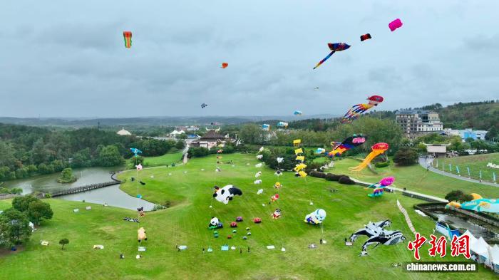 中国新闻社,武汉,9月24日(Hu Sijie,Gao Long,Wang Mengyuan)Wuhan Mulan Kite世界杯和国家彗星体育锦标赛在24号Uhan市的Huangpi地区开业。